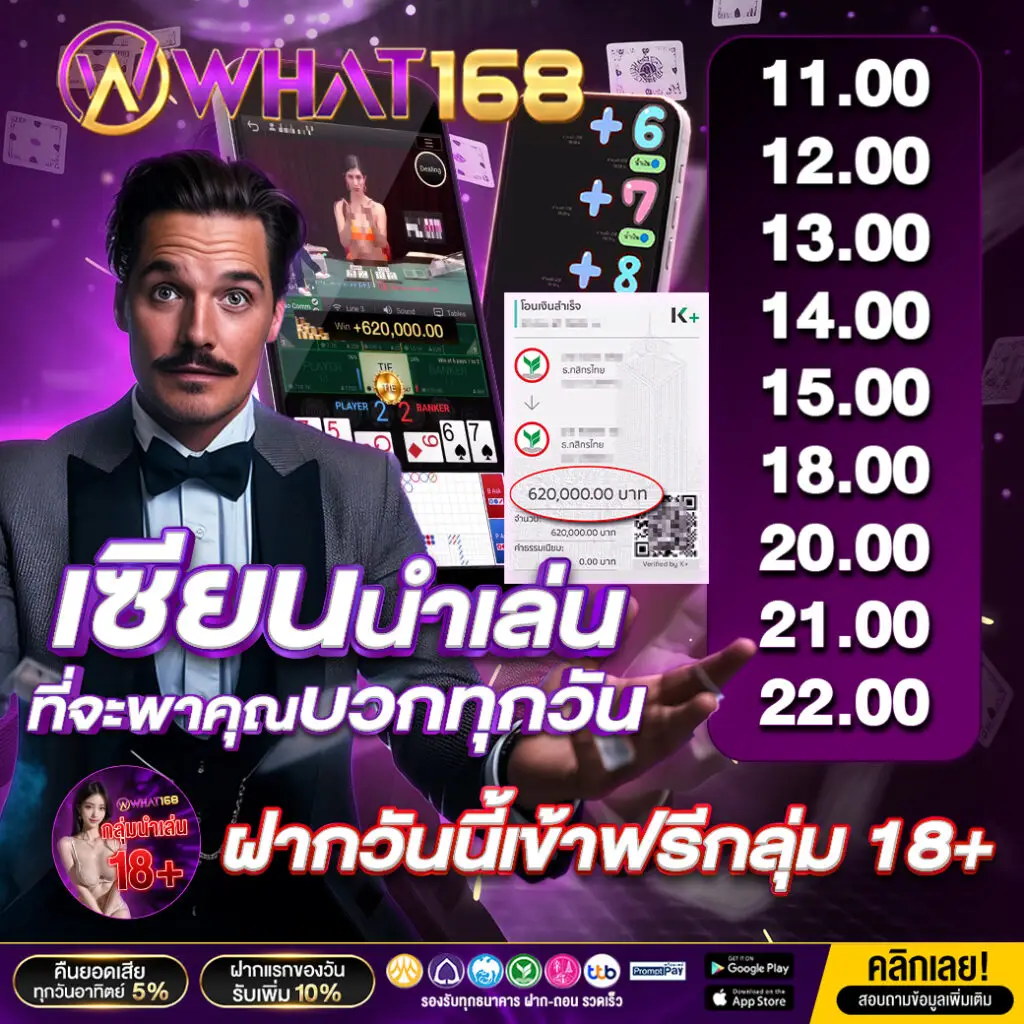เพื่อเป็นการคืนกำไรให้กับสมาชิก เราพร้อมนำเสนอ กลุ่มเซียนนำเล่น ที่พร้อมตอบโจทย์สำหรับผู้ที่ต้องการเล่นเกมไพ่บาคาร่าออนไลน์ รับรองเลยว่าบวกทุกไม้ ดูได้จาก รีวิวสมาชิก ของเราได้เลย แต่ท่านต้องเป็นสมาชิกกับเราก่อนนะ เพียงสมัคร ก็สามารถเข้าร่วมกลุ่มได้เลย What168 พร้อมเปิดให้บริการทั้งวัน 9 ช่วงเวลาดังนี้
